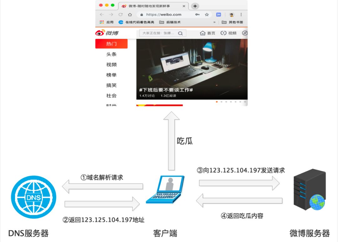 我们平时可以打开浏览器访问微博的网站,获取各种娱乐圈各种劲爆消息。这个看似简单的行为,背后有隐藏了那些细节呢?