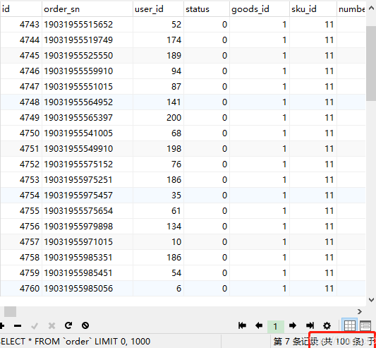 从表里我们可以看得出来,库存减少到0时,订单也就100个,而log表里也会清晰的记录着。